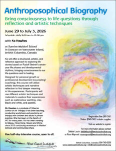 Summer courses and workshops are held at the Sunrise Waldorf School on Vancouver Island, in beautiful scenic British Columbia, Canada.